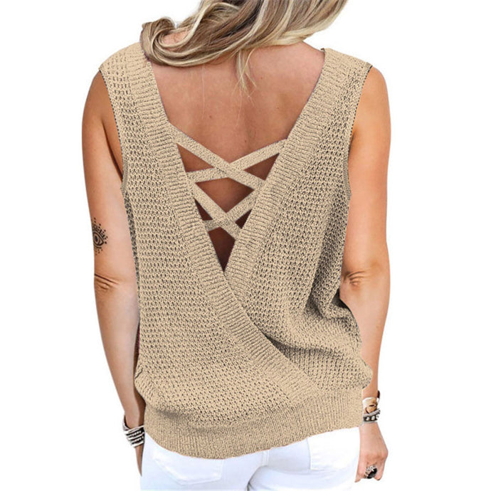 Reversable Waffle Knit Criss Cross Sleeveless Top![]()  - Regular price